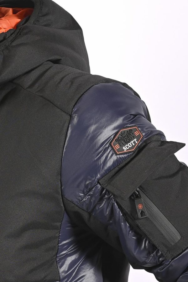Cette doudoune bleu marine matelassée bimatière avec un col montant, capuche à doublure contrastée, 3 poches zippées devant, 1 poche intérieure zippée et 1 poche logotée sur la manche vous tiendra bien au chaud pour la saison hivernale. Article tendance.