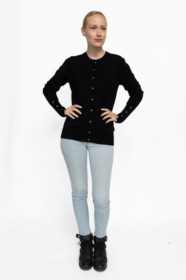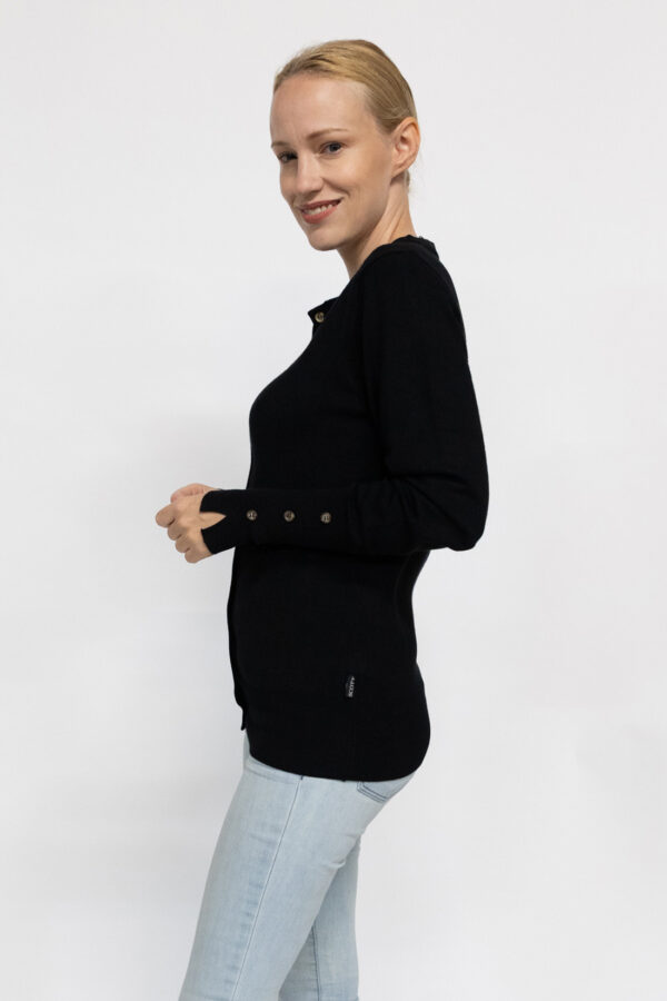 Notre gilet noir col rond boutonné offre un confort inégalé grâce à son toucher doux et agréable. Ces boutons décoratifs au niveau des manches ajoutent une touche d’élégance à ce pull polyvalent. Fabriqué avec soin à partir d’un mélange de 72% de viscose, 28% de Nylon, il est la définition même du style et du confort.
