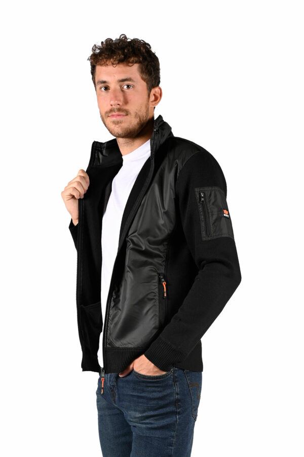 Notre gilet Stip noir zippé bimatière, avec son col montant, offre style et fonctionnalité. Doté de 2 poches latérales zippées et d’une poche zippée avec un logo badge sur la manche, il combine praticité et élégance. L’intérieur en polaire contrecollée vous garde au chaud et confortable. Fabriqué à partir de 100% de polyester avec un empiècement en polyamide, ce gilet est prêt à vous accompagner dans le froid avec style.