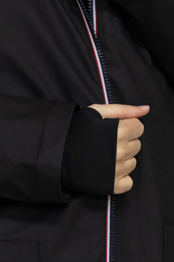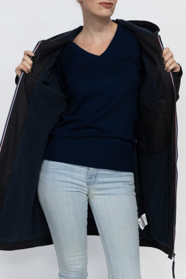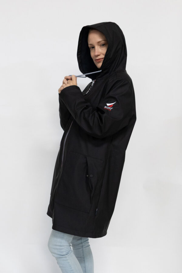 Un incontournable de toute garde-robe extérieur ,ce parka cirée noir doublée micro-polaire, intérieur entièrement doublé en micro-polaire  ,Zip central apparent , capuche doublée micro-polaire avec lien de serrage , 2 poches sous rabat pression devant , 1 poche intérieure, poignets intérieurs coupe – vent en Lycra avec passe pouce , logo à la manche