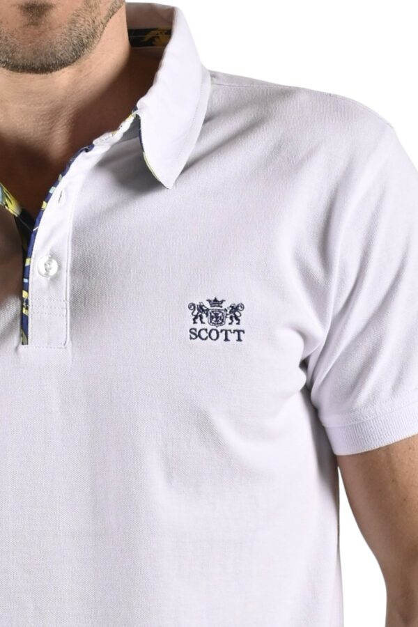 Rafraîchissez votre garde-robe avec notre polo poto blanc en maille piquée de coton SCOTT. Avec ses manches courtes, sa patte boutonnée et son col contrasté, ce polo offre un style classique avec une touche de modernité. Complet avec notre logo discret brodé sur la poitrine, c’est l’essentiel parfait pour un look décontracté et sophistiqué.
