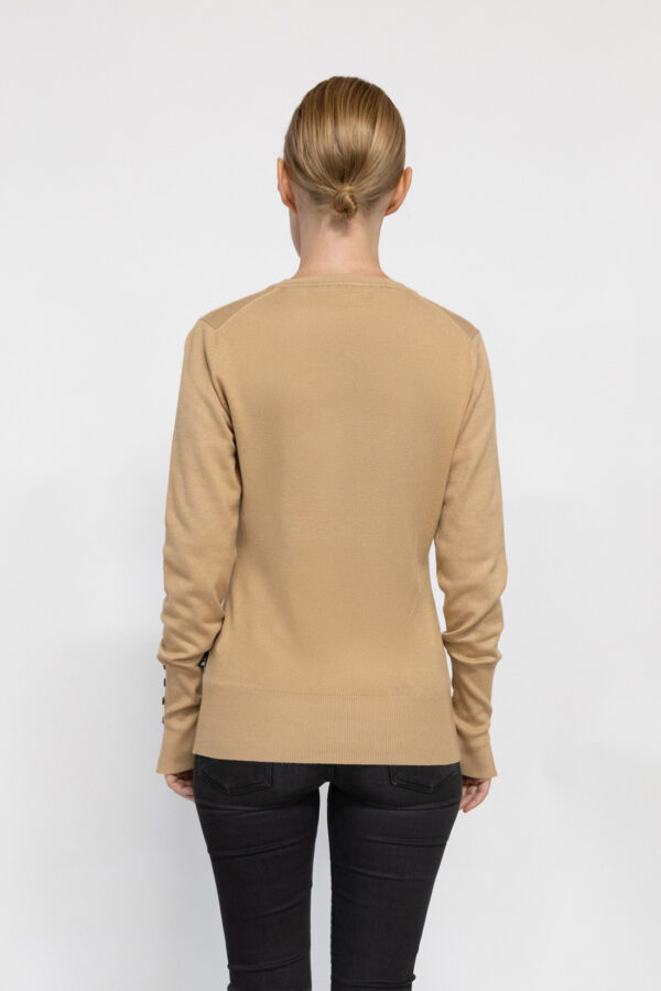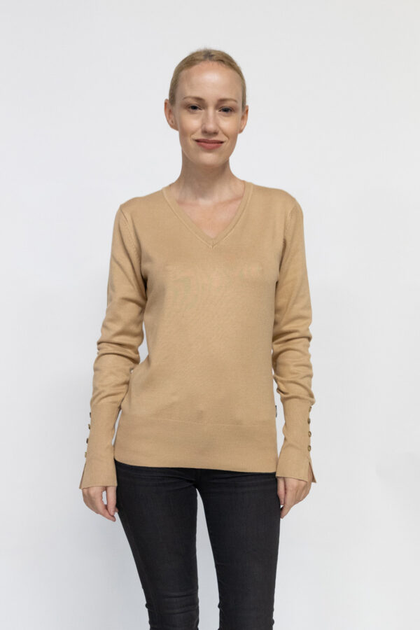 Notre pull Atina beige col V offre un confort inégalé grâce à son toucher doux et agréable. Ces boutons décoratifs au niveau des manches ajoutent une touche d’élégance à ce pull polyvalent. Fabriqué avec soin à partir d’un mélange de 72% de viscose, 28% de Nylon, il est la définition même du style et du confort.