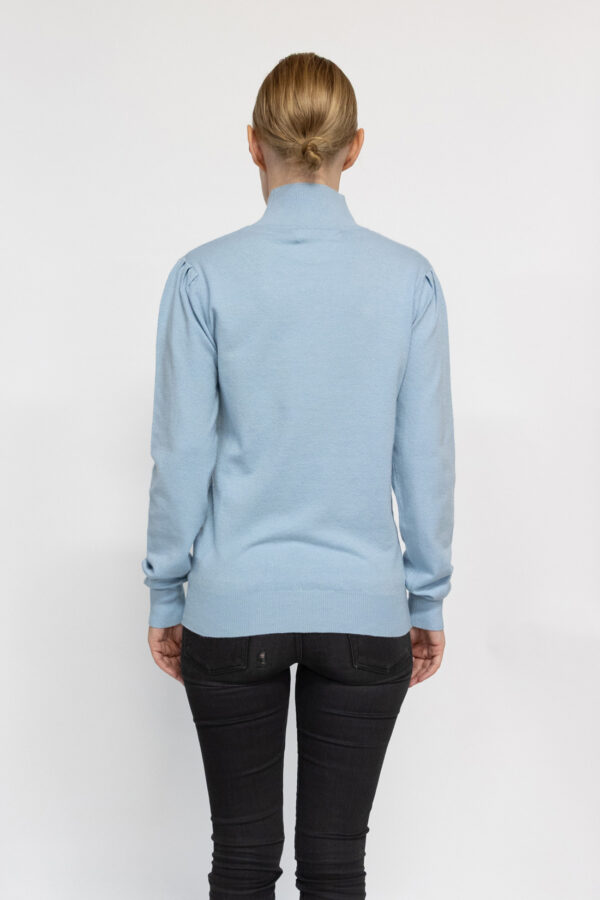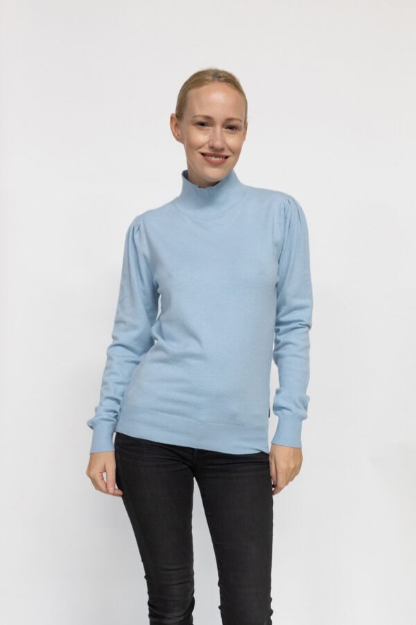 Notre pull Odelia bleu ciel col montant offre un confort inégalé grâce à son toucher doux et agréable. La légère fronce au niveau des épaules ajoute une touche d’élégance à ce pull polyvalent. Fabriqué avec soin à partir d’un mélange de 72% de viscose, 28% de Nylon, il est la définition même du style et du confort.