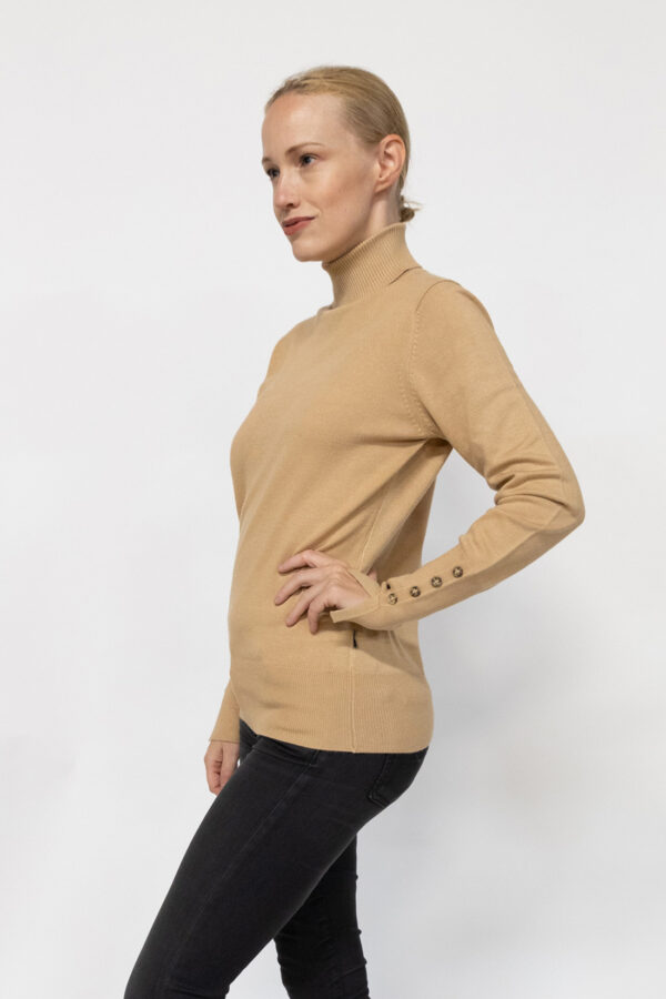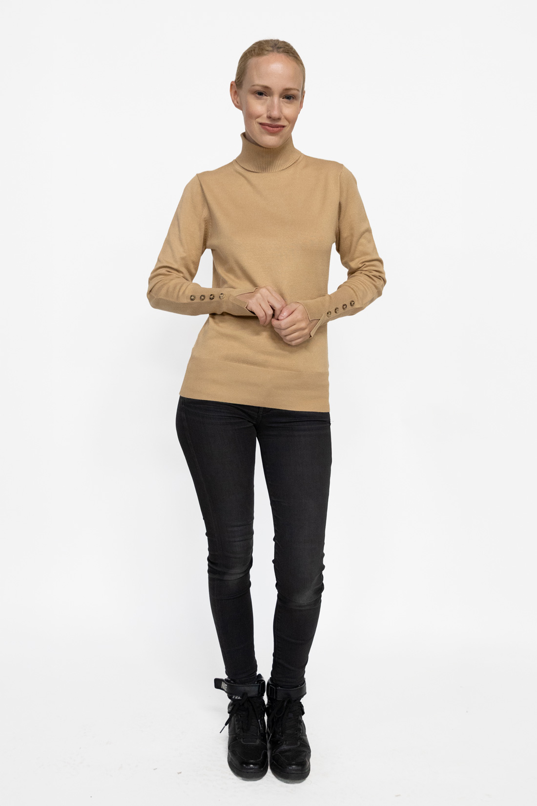 Notre pull Orina beige col roulé offre un confort inégalé grâce à son toucher doux et agréable. Ces boutons décoratifs au niveau des manches ajoutent une touche d’élégance à ce pull polyvalent. Fabriqué avec soin à partir d’un mélange de 72% de viscose, 28% de Nylon, il est la définition même du style et du confort.