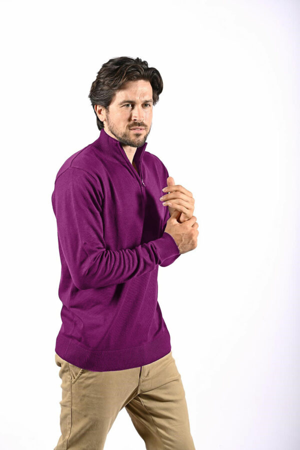 Notre pull Versau bordeau demi-zip à col montant est l’essentiel de l’élégance et du confort. Sa douceur exceptionnelle vous enveloppe dans un bien-être absolu. Avec une broderie ton sur ton discrète à la poitrine, il allie subtilement style et sophistication. Fabriqué à partir d’un mélange de 52% de viscose, 28% de polyester et 20% Nylon, ce pull offre une polyvalence inégalée pour un look élégant en toute occasion.